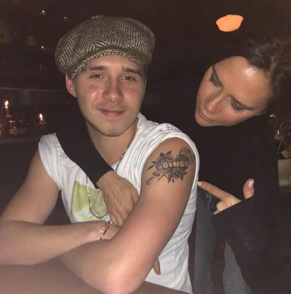 包括在肩膀上,大布曾经文过一个“爱心Mum”的图案,维多利亚当时还跟他合影来着。
