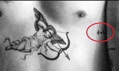 左侧肋骨上的dvb,大卫·贝克汉姆的缩写。