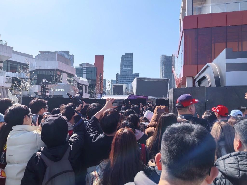 3月10日(周二)14点左右,徐汇滨江的彪马联名活动将有明星出现,等待的观众将特定片区围了里三层外三层。本文照片均由赵忞拍摄